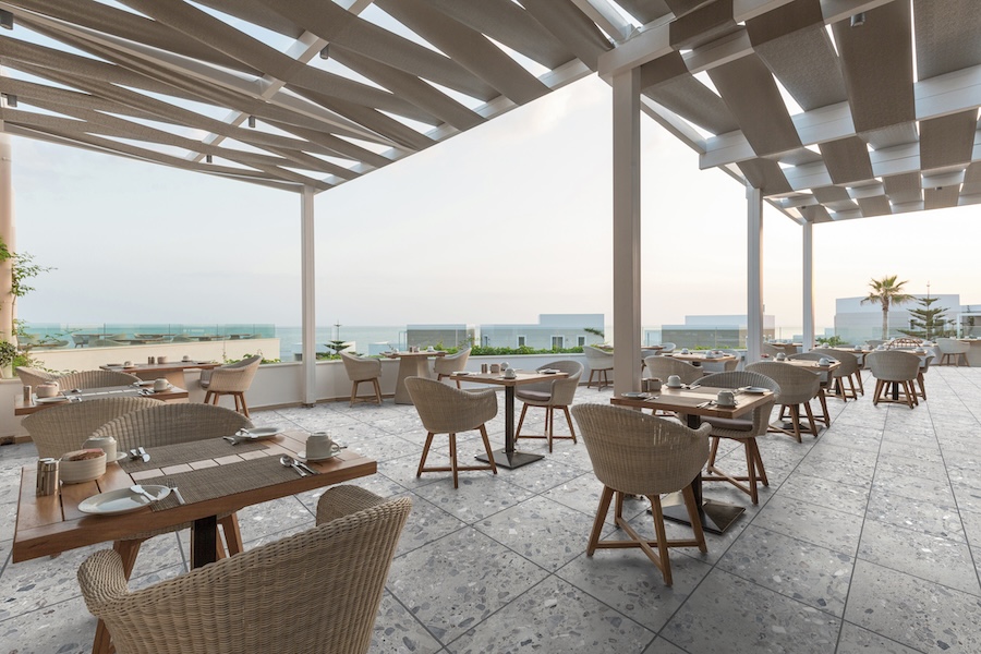 Earthen 2CM porcelain pavers reinterpret the terrazzo look with natural warmth and outdoor durability, creating a seamless connection between patios and the surrounding landscape.