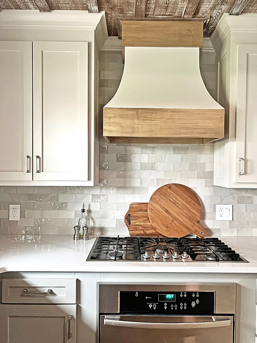 Drawing from classic Moroccan tile traditions, Fez ceramic tile features a mix of glossy and matte surfaces that add depth and handmade character to this kitchen backsplash. Design by Jenna Snow, owner and interior designer, Snow Design Co.
