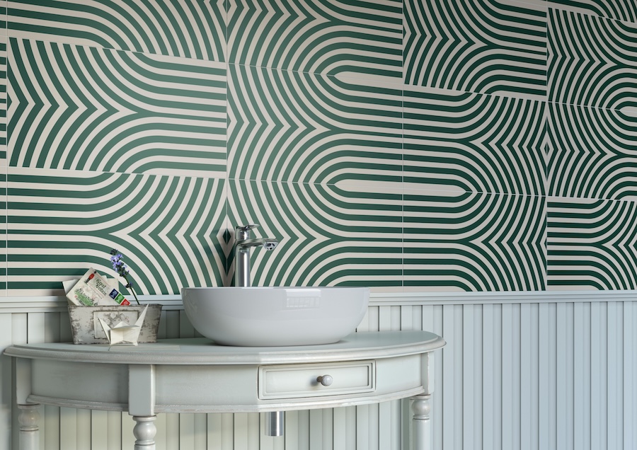 Instead of simple banding, today’s tile designs explore curved, layered, and dimensional “stripe-ish” effects:• Art Deco Curves: Collections like Elipse reinterpret stripes with sweeping arcs that nod to the glamour of the 1920s, bringing a softer, sculptural vibe.