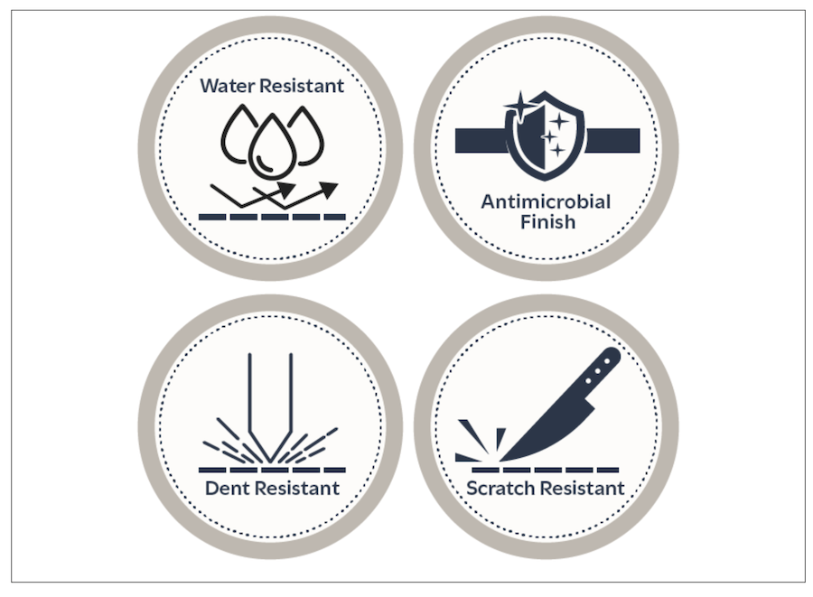 - Water Resistance. Handles spills, accidents, and tracked-in moisture with confidence.