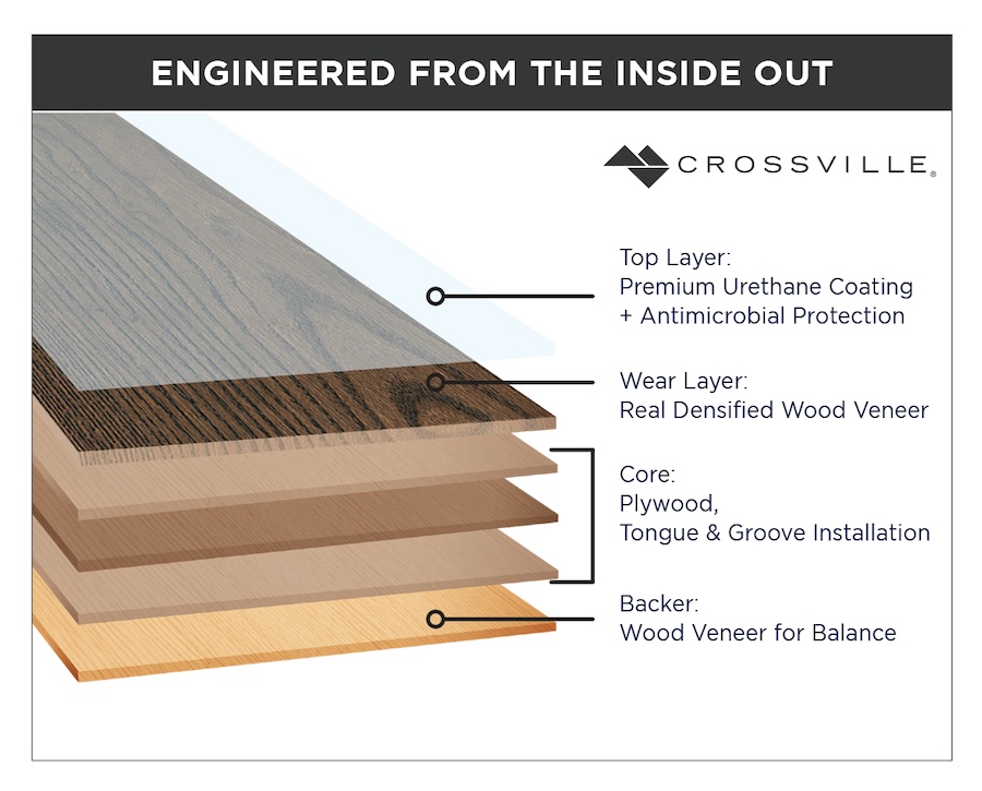 This layered construction creates a balanced engineered structure that offers high strength, dimensional stability, and lasting performance. Densified hardwood flooring looks better longer—even as conditions change.