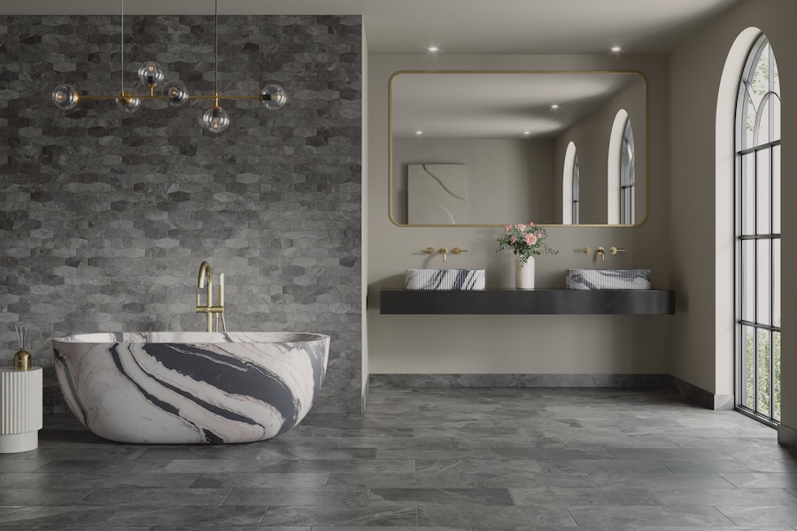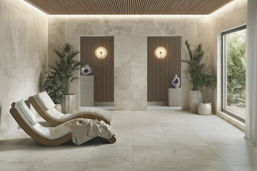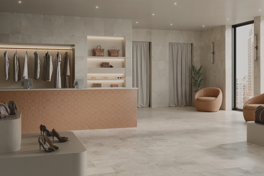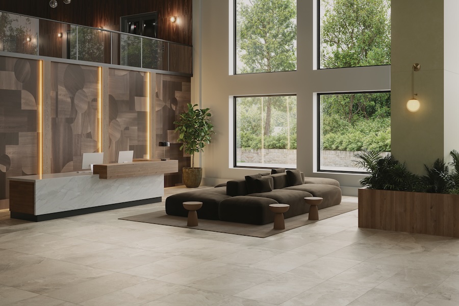 Cleve porcelain tile brings that same sensibility into a format that works across more applications—whether that’s a spa-like bath, a retail environment, or a hospitality setting where materials need to balance visual impact with durability.