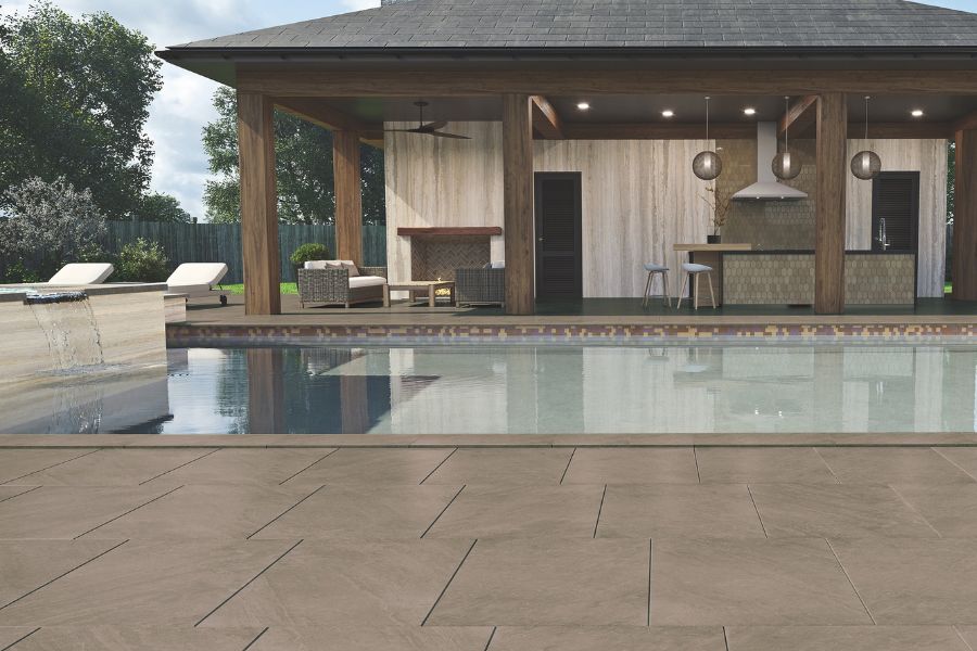 As the most traversed part of your pool area, exterior decking, coping, and pavers can make the biggest visual impact, and while you want these surfaces to be aesthetically pleasing, they also need to withstand foot traffic and harsh weather conditions. Exterior flooring should also provide enhanced traction for slip resistance and safety. With outdoor performance in mind, Crossville Studios offers many amazing tile alternatives to fashionably yet practically cover outdoor floors.